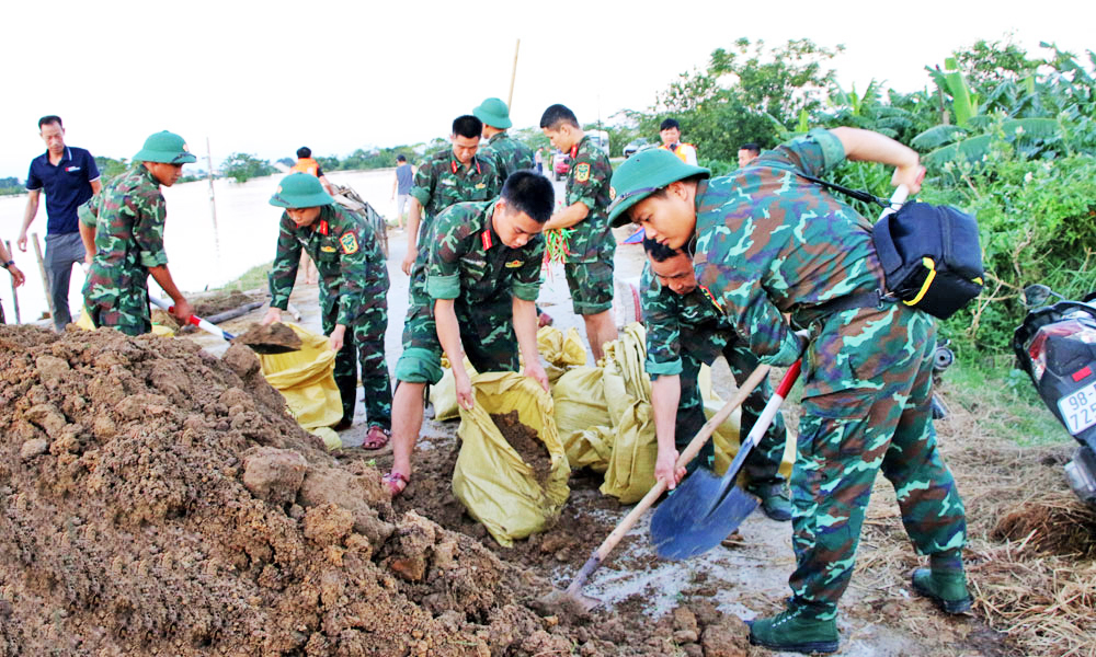 Trước tình huống cấp bách, cán bộ, chiến sĩ Lữ đoàn Pháo binh 675 (Bộ Tư lệnh Pháo binh) đã có mặt kịp thời cùng Nhân dân, công an, dân quân tự vệ tập trung gia cố, tôn cao mặt đê.