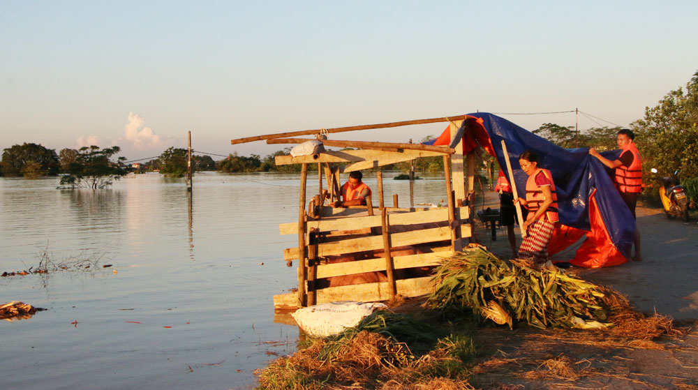 Lũ trên sông Cầu dâng cao, người dân địa phương tiếp tục phải di dời tài sản. |